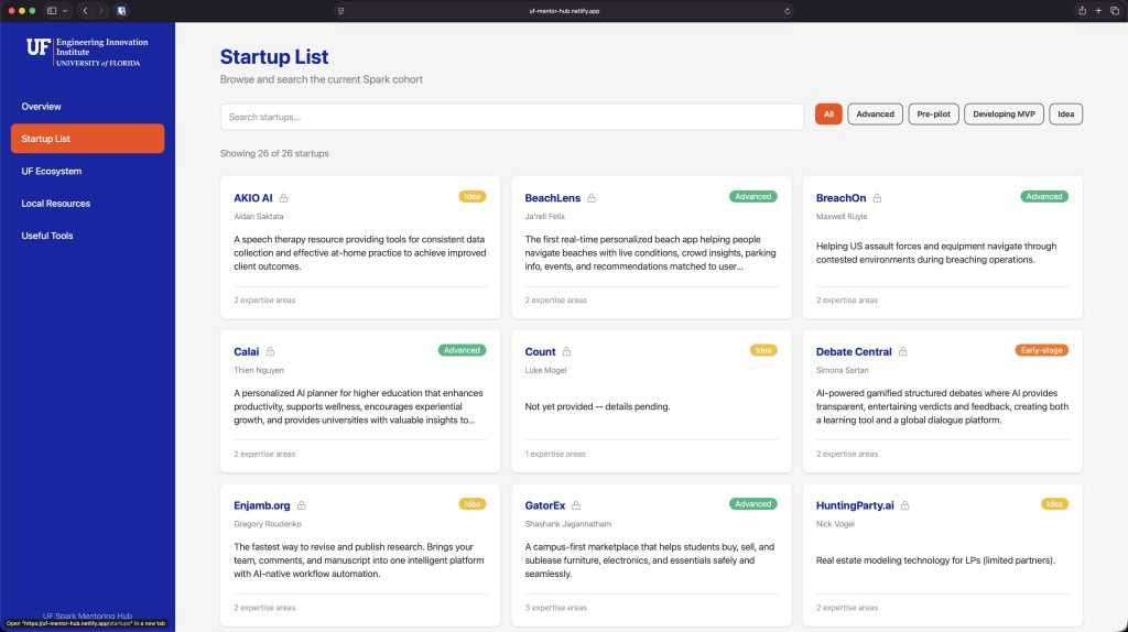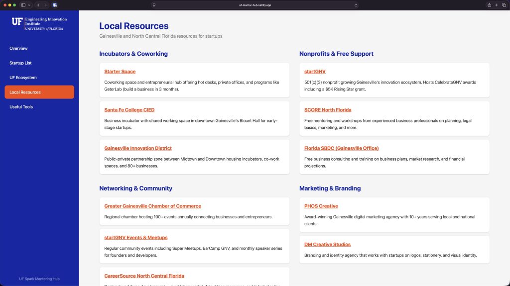 - After the call I dropped the raw transcript into the project folder, and asked Claude Cowork to help me build some sort of interface that featured: The startup list, individual startup pages, UF and local resources, plus useful AI tools. Within about 20 minutes a clickable V1 tool was complete and immediately working on my local machine. Another 20 minutes after that and I’d worked out some style tweaks. A little more after that and I’d added unique passwords to each startup’s page for privacy.
